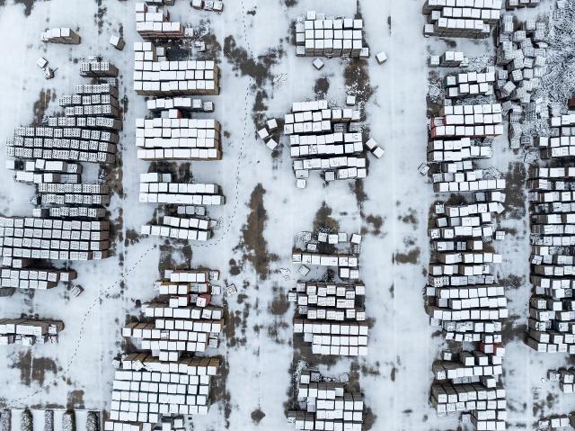 再生材料空心砖建筑材料堆场。(图 / 视觉中国)