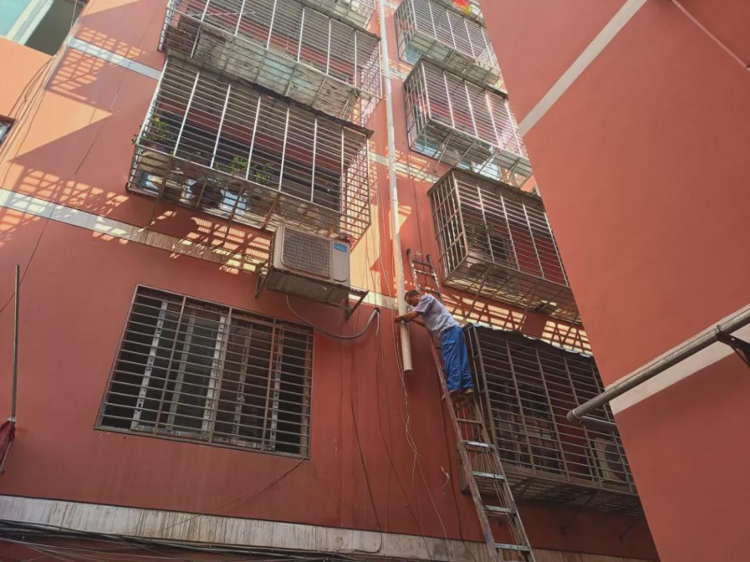 荆门市白庙街道月亮湖社区:大修脱落雨水管道 确保居民居住安心