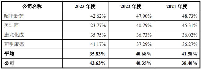 与益诺思相反,昭衍药物的毛利率在报告期内逐渐下降。招股书解释说,昭衍药物的生物资产主要按照公允价值计量,按照市场价格结转。昭衍药物2022 年实验猴市价格比较 2021 年增长,生产成本压力大,毛利率明显下降。2023 年毛利率大幅下降,主要是因为市场竞争加剧,订单价格下降,实验猴子成本仍处于相对较高水平,因此毛利率进一步下降。