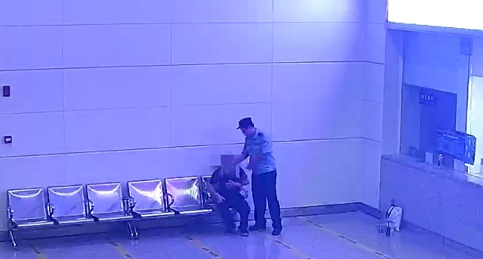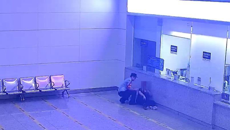 乘客低血糖突然倒下,茂名站民警热心帮助。