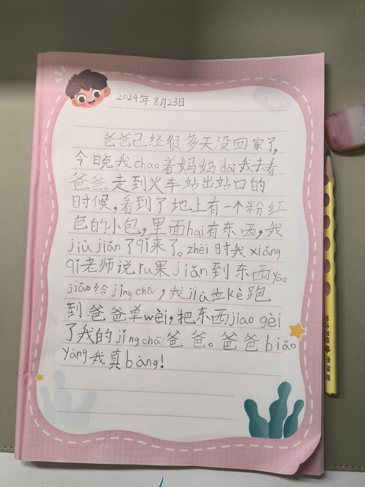 8月23日晚,佛山铁路公安处阳春站派出所迎来了一位特殊的小群众。我看到她手里拿着一个粉色的小卡包,跑到指挥室,对正在进行视频检查的警察喊了一声清脆的“父亲”。