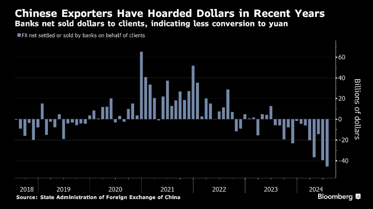 值得注意的是,虽然中美差距最近逐渐收窄,但差距仍然很大,这在一定程度上抑制了公司快速出售外汇资产的冲动。然而,詹的预测更加激进。他估计,由于市场环境和政策调整,相当一部分中国出口商和跨国公司可能会因为2022年以来积累的美元头寸而迅速撤离,涉及的金额可能高达1亿美元。