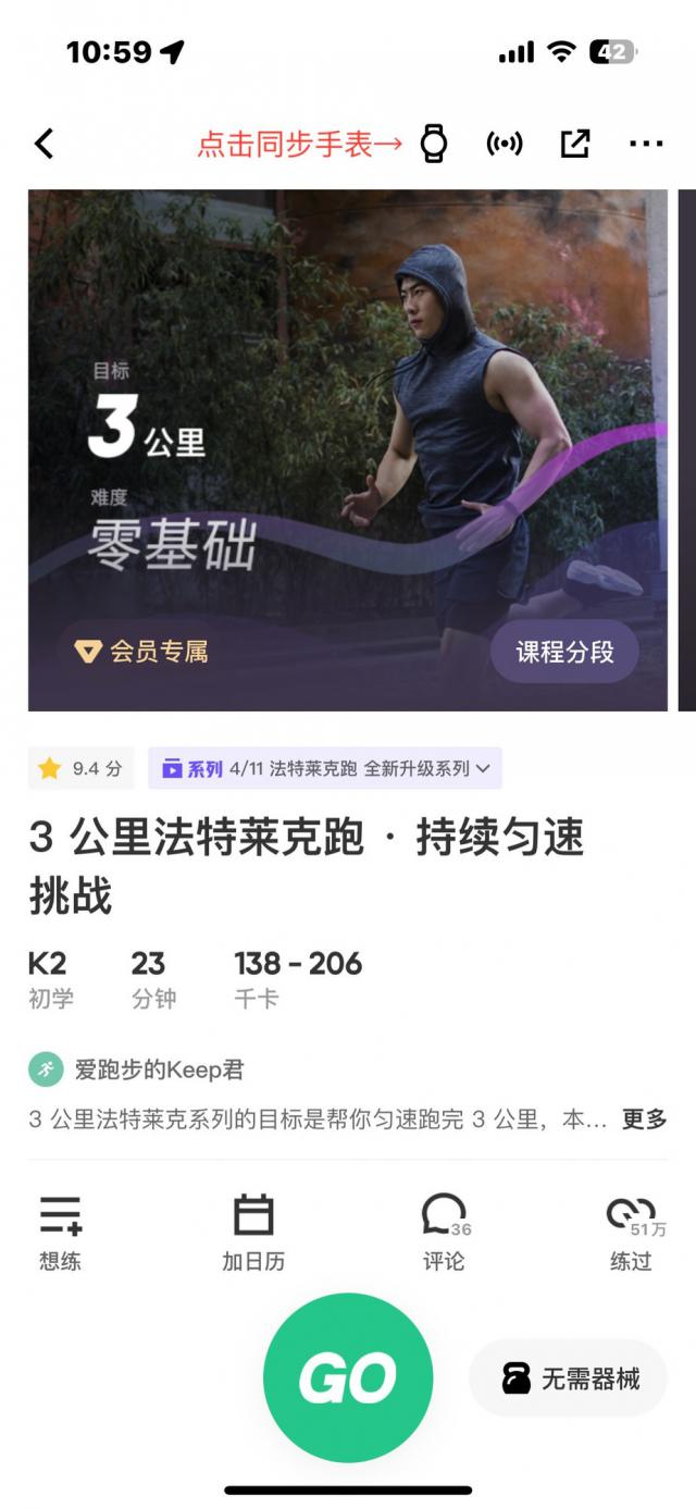 更聪明的是,当你在的时候, keep APP 选一门锻炼课程,然后点击右上角的手表图标,即可将课程同步。 Keep P1 手表端。在跑步过程中可以找到同步的锻炼课程。在选择合适的课程后,你可以开始锻炼。