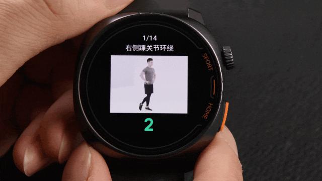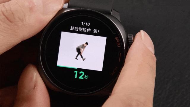 此外,手表在运动前后还有跑步前热身和跑步后拉伸的教程。手表可以帮助我们通过框架动画和有节奏的蜂鸣来热身和拉伸。为我们跑步前后提供最佳的身体状况调节。