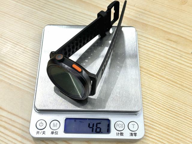手表采用轻量化设计,整体重量甚至比我之前戴的手镯还轻。轻量化对运动的好处是可以在一定程度上减轻手臂的负担,不会随着运动时间的增加而减轻手臂的体力。根据官方数据,如果搭配尼龙表带,整体重量可以降到 36g.