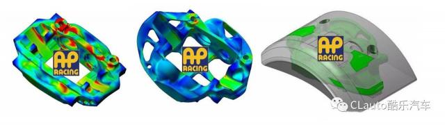 你们也许会说:怎么做?使用计算机辅助设计 ( CAD ) 以及有限元分析 ( FEA ) 进行压力分析,AP Racing 在真实情况下,可以分析制动卡钳的每个部分承受了多大的压力,并将材料添加到承受压力的地方,从而将材料从承受压力较小的地方拿走。