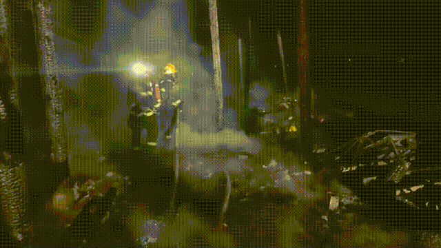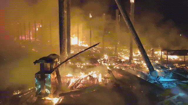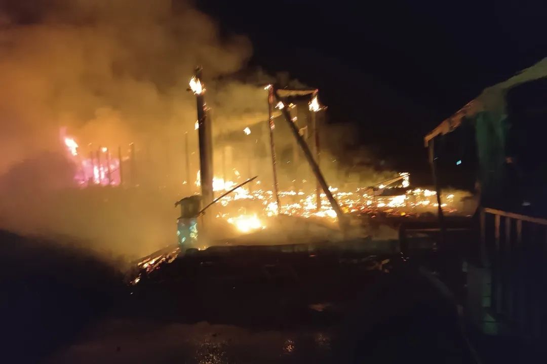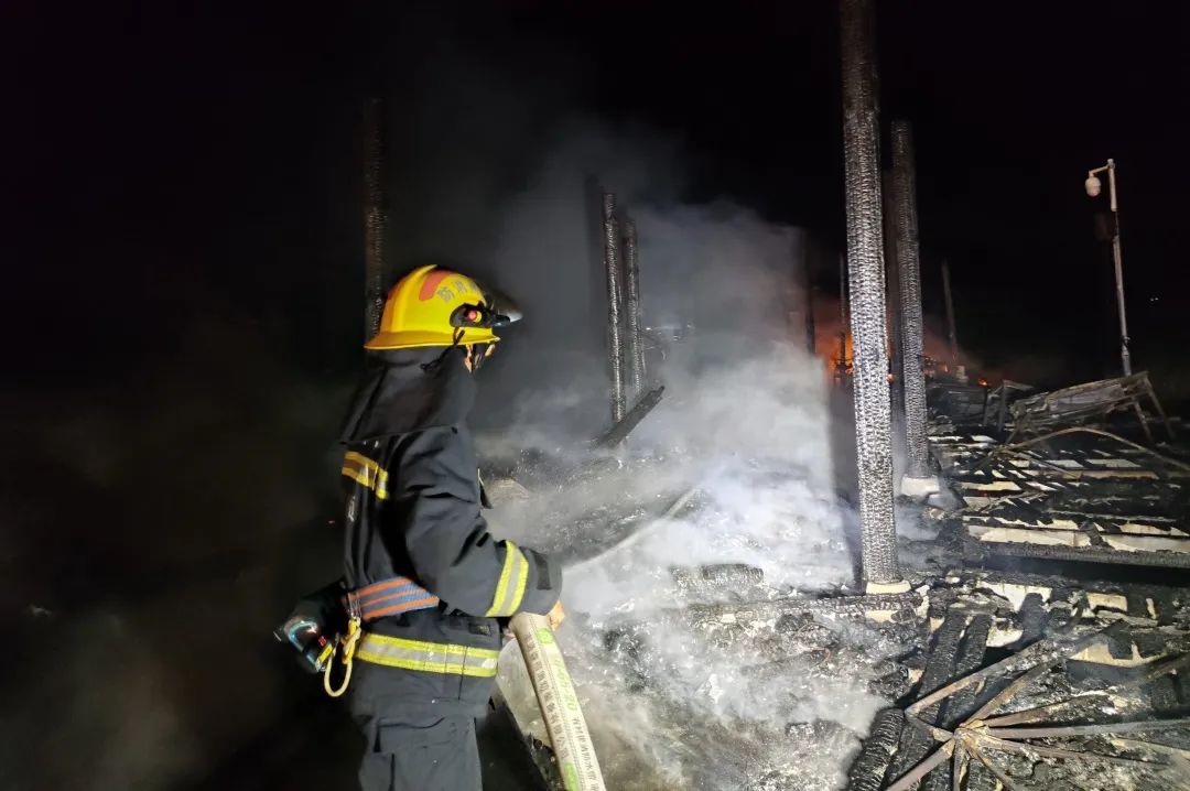 安顺一木屋发生火灾,只有框架被烧毁。...