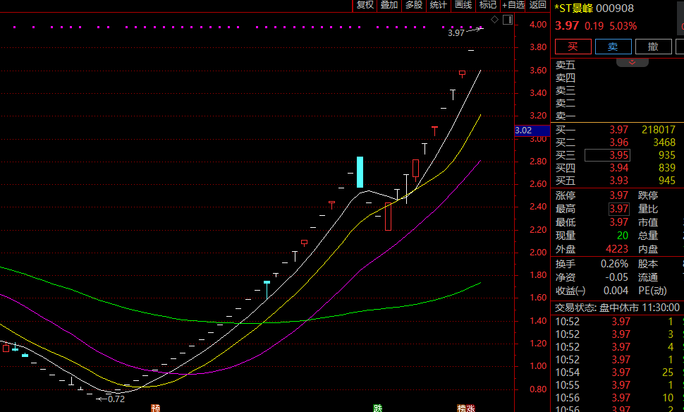 ST股早日继续大幅高开高走,板块指数成交量上涨2%以上,这是该指数连续第三天高开高走。个股仍在涨停,领头羊*ST景峰继续涨停,近41个交易日涨停37天,累计暴涨451%。ST收购、*ST盈利等近30只股票也强势涨停或超过5%。