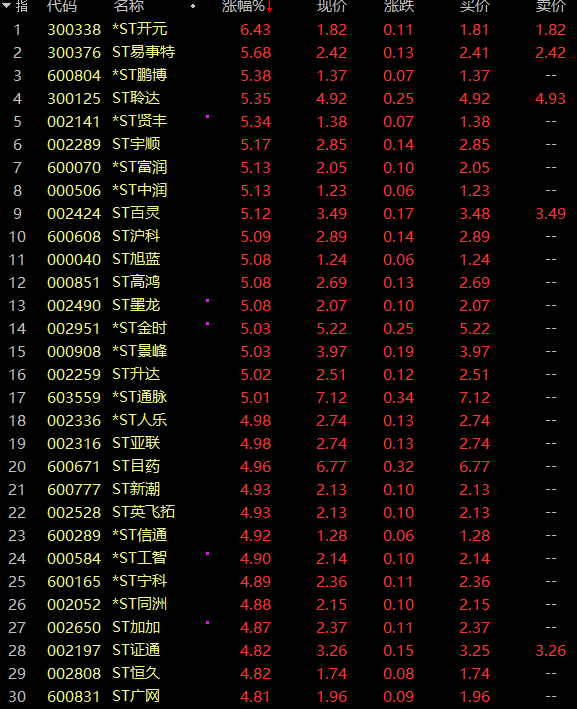 另外,一些ST股的基本面也开始好转。ST工智今天发布了2024年半年度报告,上半年实现净利润475.91万元,同比增长48.24%。上午,ST工智一字涨停,收入2.14元,比6月低点0.94元翻了一番。
