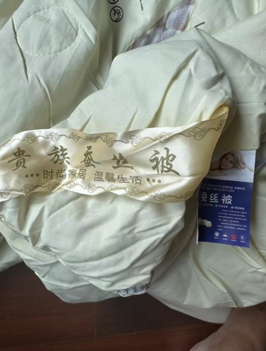这张蚕丝被的照片,标签显示为“蚕丝被” 提供来源/受访者