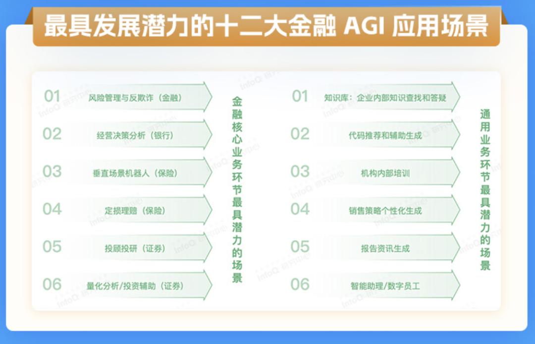 今天,让我们一起开启信通院铸基规划和 InfoQ 最新发布的研究中心联合发布《AGI 《金融领域应用实践洞察》报告,共同探索金融巨头们如何玩耍? AI。从智能化投资到风险控制,再到个性化金融服务,AI 正以其独特的魅力和无限的潜力,帮助我们解锁新技能,使资金流转更加明智和快速。
