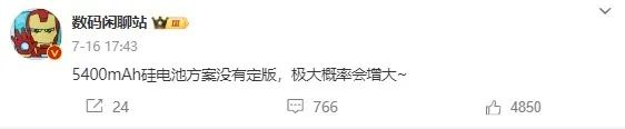 面临着同行如此卷的进攻,小米也是迅速改变了方案,第一,大杯电池直接飙升至6000mAh。