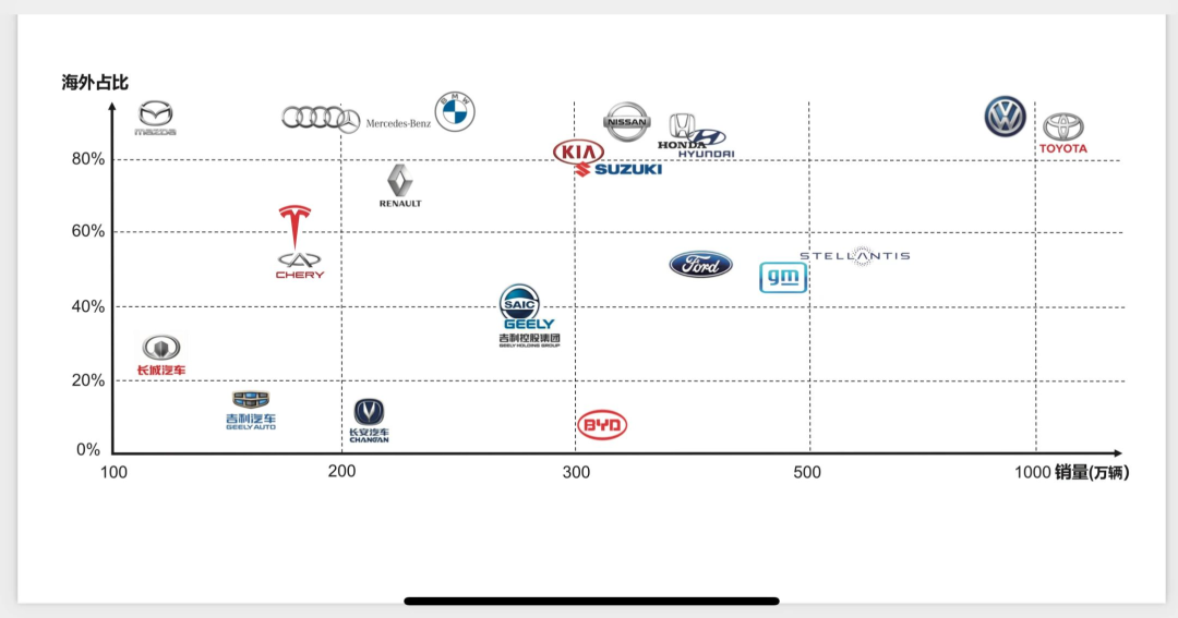 中国汽车公司,从对外贸易和全单件CKD(Completely Knocked Down,指完全单件组装,将整车转换成零件,然后运输到国外市场,在当地进行组装和生产)。装配初期国际化阶段向深层国际化过渡。除了设立海外销售分公司外,设计、研发和制造基地的全球布局也在进行中。中国领先的汽车公司在2023年的海外销售额占8%-50%。