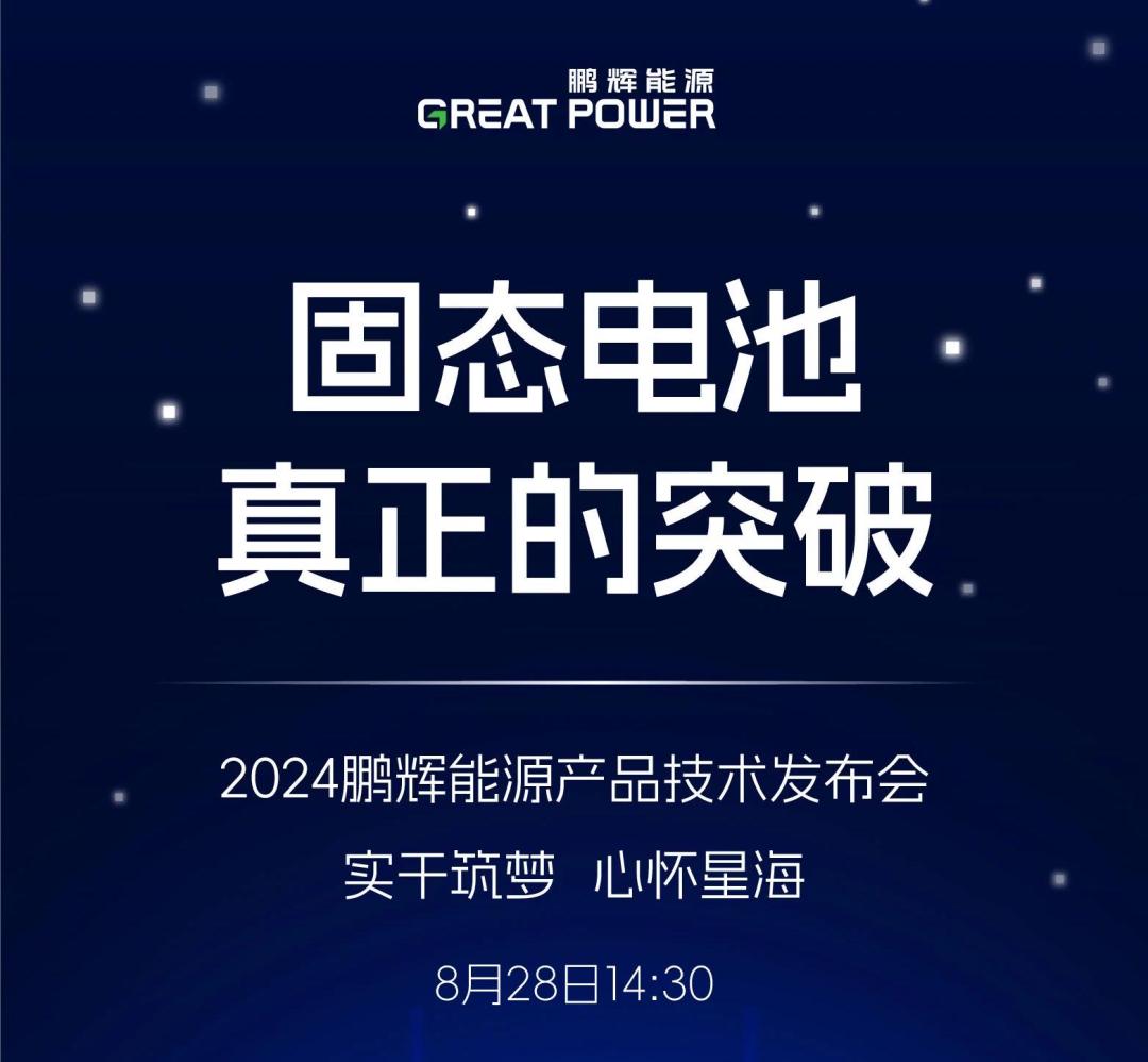 8月21日,鹏辉能源微信官方账号发布报道称,全固态电池有“真正突破”,8月28日召开的相关发布会将首次公布实物。
