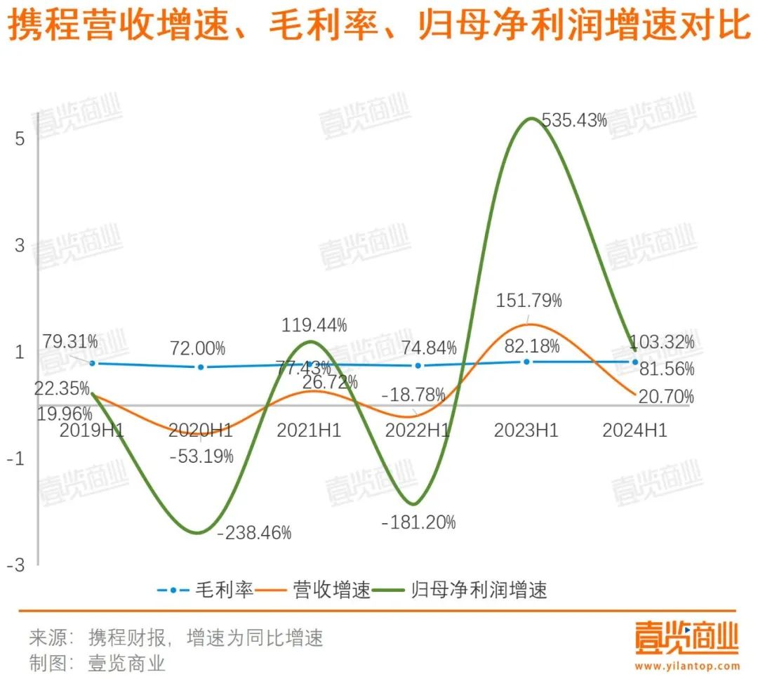 就收入而言,携程呈现出更稳健的增长趋势。上半年,携程总收入达到约246.77亿人民币,同比增长20.7%。虽然这一成就仍然令人眼花缭乱,但与去年同期超过150%的惊人增长率相比,它显然感受到了市场增长动力的转变。