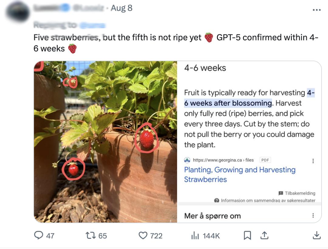 本月初,OpenAI CEO Sam 当Altman在推特上暗戳自己花园里的五个草莓时,有网友根据草莓的成熟时间跳过了先知:GPT-5可以在接下来的4-6周内确定发布。这个正好符合秋天可能发布的时间点。