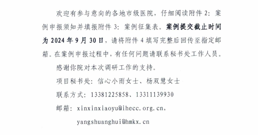 国家卫生健康委国际交流与合作中心邀请市级医院参加调查和案例申请!