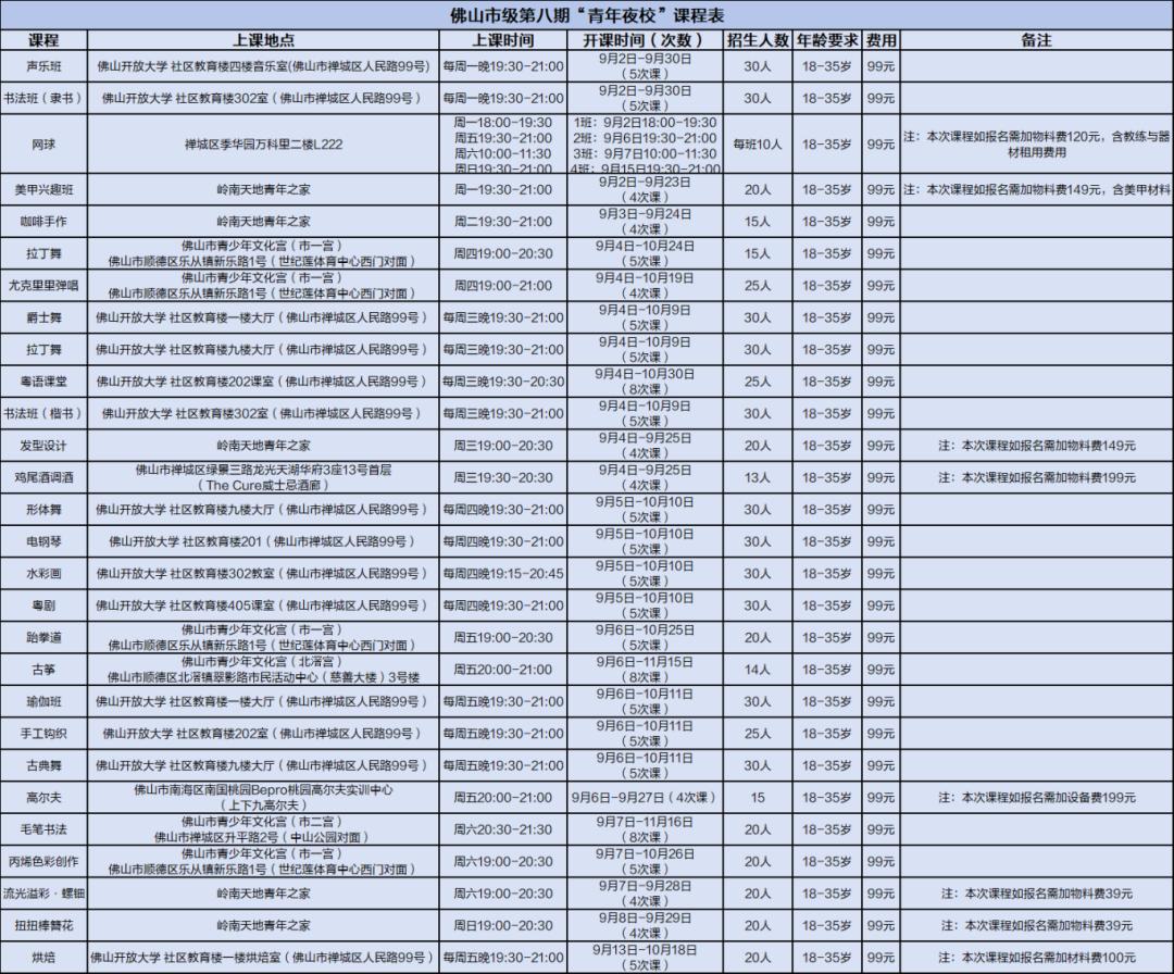 从99元开始!佛山青年夜校上新!今晚开抢→