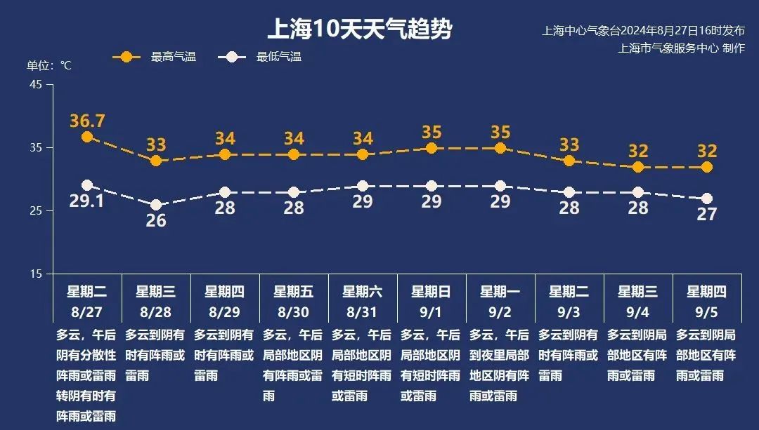 上海周四处于副热带高压边缘,气温将保持在26~34℃。没有高温,但不代表不热。请继续保持防暑降温。一旦处于副高边缘,很容易触发下午的短时阵雨或雷雨。我们应该更加关注预报信息,及时采取预防措施。8月底9月初,副热带高压再次增加,最高温度可能仍升至35℃左右。热度还没有离开,不能放松。