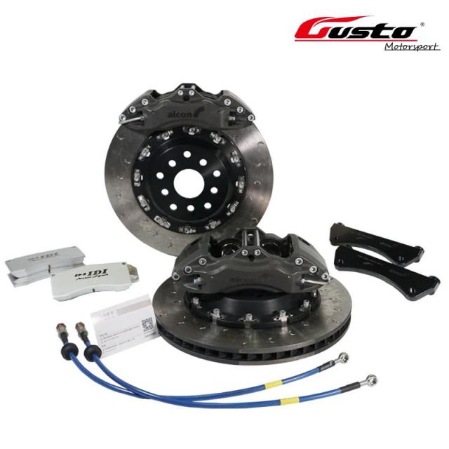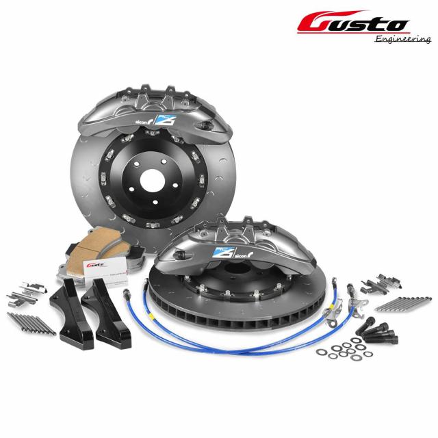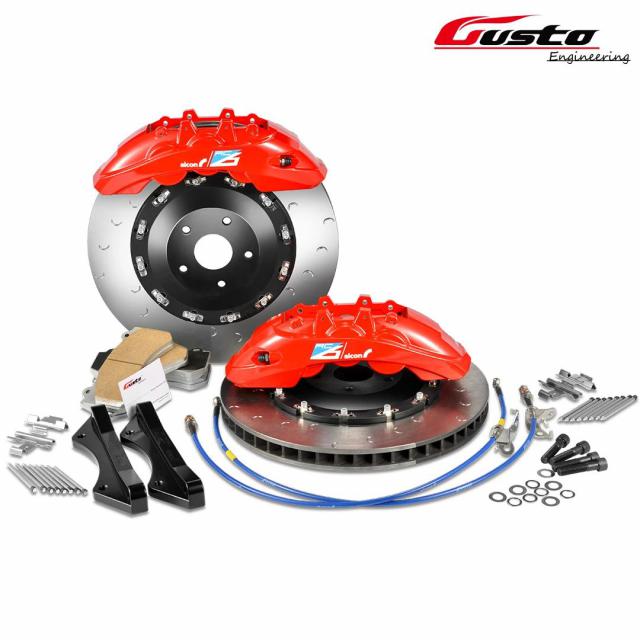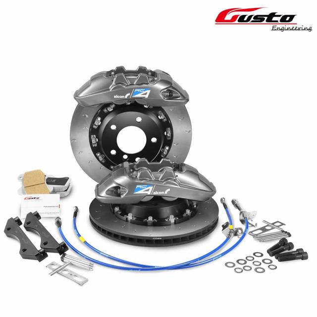 官方正品的 Alcon 包括:卡钳在内的套件 × 1 对(进口)、刹车碟 × 1 对(进口)、刹车片 × 1 套(进口)、螺丝螺母 × 1 套(进口)、刹车油管 × 1 对(进口)、Alcon 官方授权 GUSTO 合头桥(GUSTO 定制)。