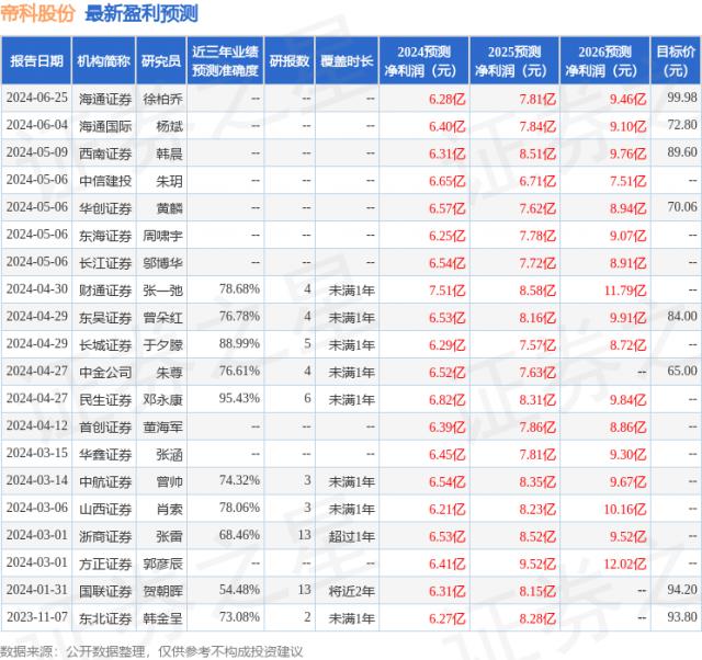 根据近三年发布的研究报告数据,民生证券邓永康研究员团队对该股进行了深入研究,近三年平均预测准确度高达 预测95.43% 2024 年度归属净利润为利润 6.82 十亿,根据现价转换预测。 PE 为 7.08。