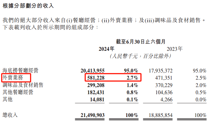值得注意的是,海底捞上半年的外卖收入为5.81亿元,占总收入的2.7%,较2023年同期增长23.3%。这主要是因为2023年下半年一人吃精品快餐,为外卖收入做出了巨大贡献。