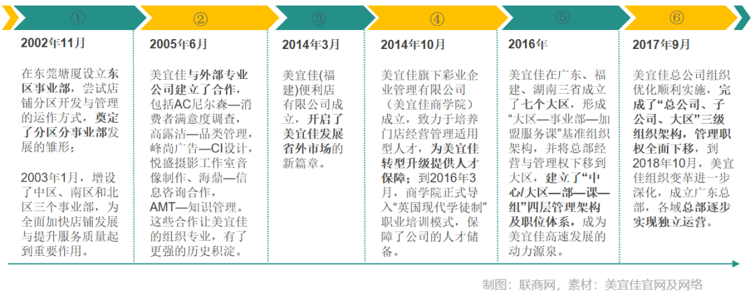 在组织方面,随着规模的发展,美宜佳不断升级,一些重要的里程碑事件对美宜佳的积极发展起到了积极的作用: