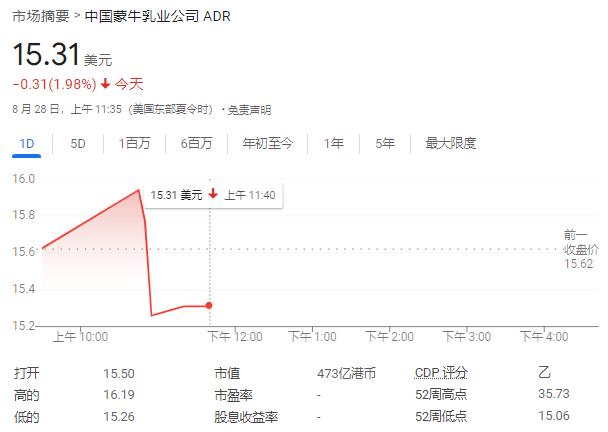 周三,蒙牛乳业港股收跌 今年已经累跌近2.59%。 42.8%。蒙牛美股一夜之间初盘涨幅超过 3.6% 之后又一次跌超 2.3%。