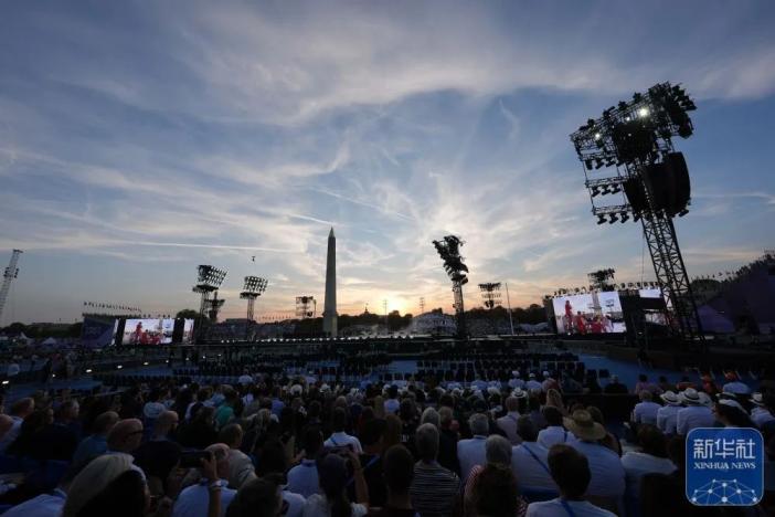 ↑它是在巴黎协和广场拍摄的开幕式。新华社记者 侯俊 摄