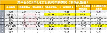 相应地,最近有很多关于债基赎回的传闻。财联社记者在 8 月 27 几天内获得的一个网络代销平台的赎回数据显示,近期机构资金在债基上出现了一小波赎回潮,8 月 19 日至 27 日期,短暂 7 一个交易日,只有一个网络代销平台债基被赎回 150 亿元,而 8 月 26 日、27 每天债基被机构申请赎回约100亿元,其中主要赎回类型为纯债基金。