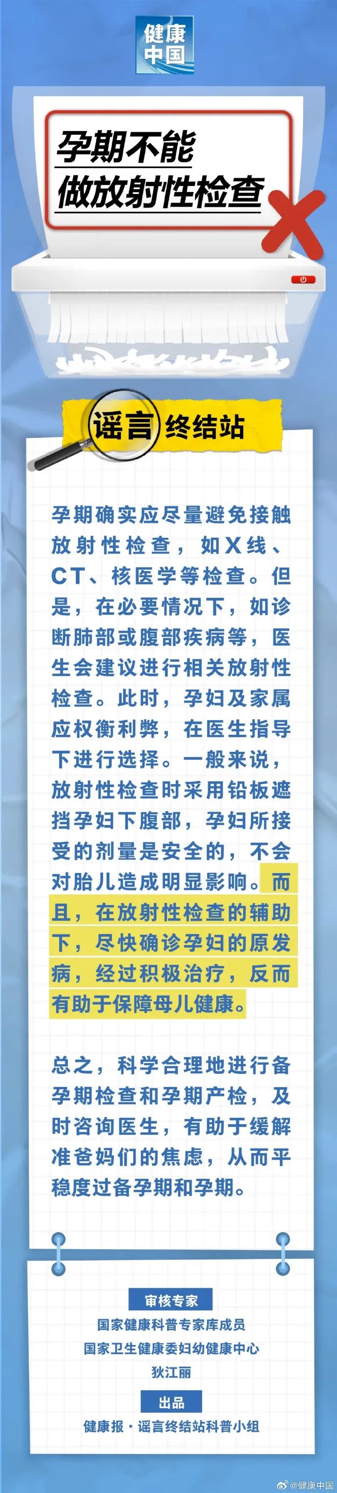 怀孕期间可以做放射性检查吗?滚动前后看答案。(来源:健康中国)