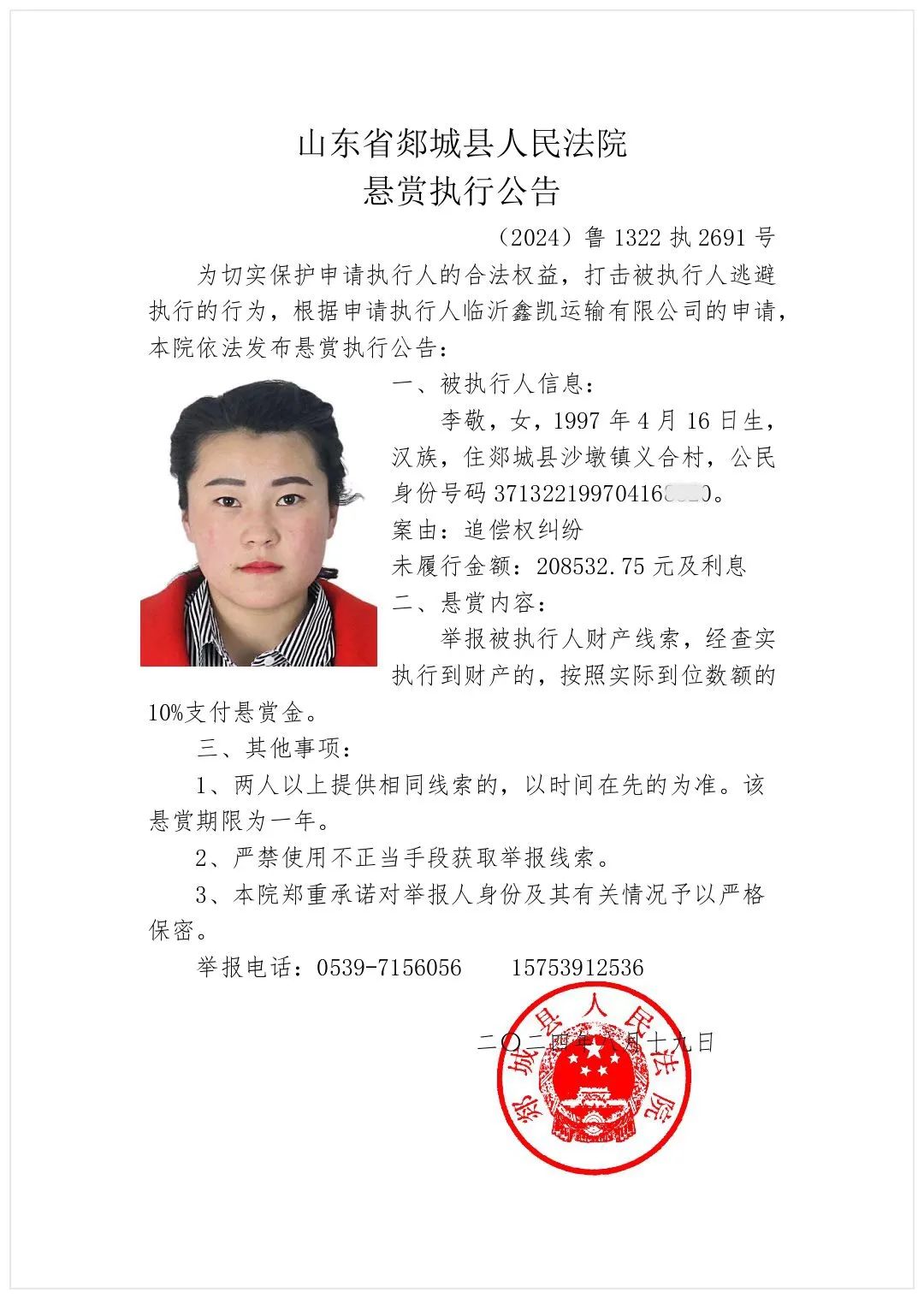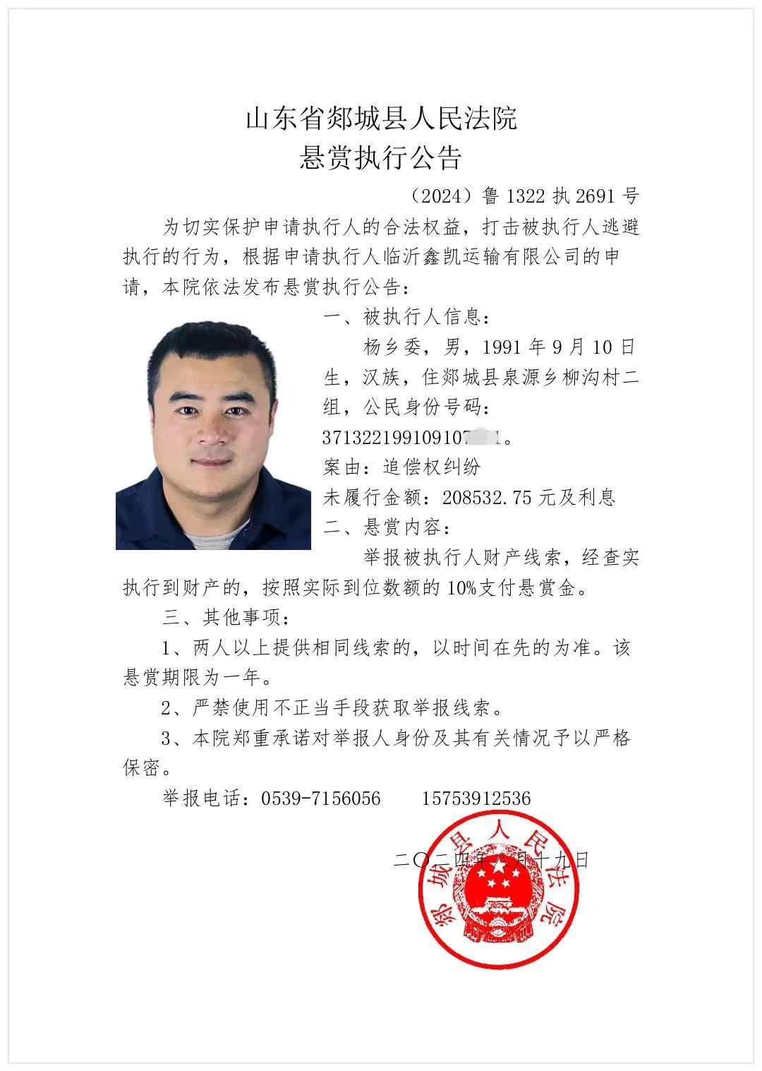 原标题:“悬赏公告”(二)城县人民法院(二)〇24年第19期)