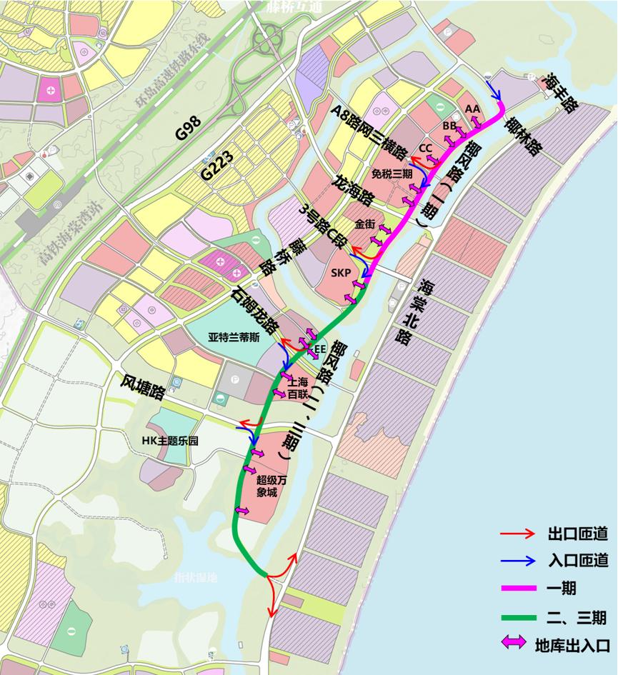 椰风路地下道路规划总长度为5.3公里,分三个阶段进行建设,将建设省内第一条特长距离地下市政道路。项目建成后,将为沿线免税城市第二阶段、免税城市第三阶段、金街等拟建、新建项目的交通系统提供支持和支持,进一步缓解海棠北路的正常拥堵,有效促进整个地区的发展。