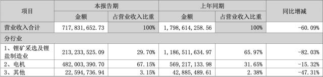 江特电动机的核心业务包括锂矿、锂盐制造、电动机,上半年收入占比分别为: 29.70%、锂矿业和锂盐业务收入同比减少67.15%, 82.03%,不再是主要的收入来源。