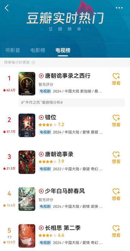 在爱奇艺迷雾剧场,《错位》接力了《看不到影子的少年》,以“案中案”的形式拓宽了悬疑叙事的表达空间,这部剧也不负众望,创造了爱奇艺站的内部。 20 收藏内短剧热度记录,与《唐诡》系列同时进入豆瓣热榜前三。这条线上的迷雾剧场,观众的基本盘稳步增长,同时依然可观,粘性高。也就是说,迷雾剧场的观众,可能同时出现“仁德”,但绝不会“变心”就这样跑。