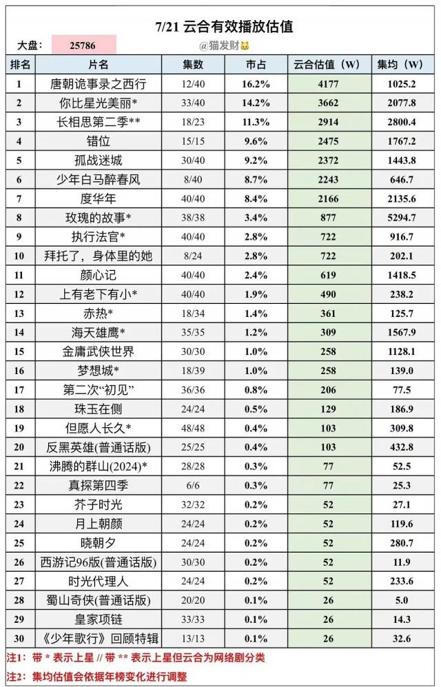 7 月中下旬到 8 月初,历时三周的奥运周期震荡剧集市场,时差阻挡不了观众的热情,比赛分散了对经济的关注。事实证明,真正的强者从不抱怨环境,真正的暑期档。 · 剧王的《唐代诡事录西行》正好出现在这个周期,甚至创作出来 6 “逆跌”奇迹,次热度破万。