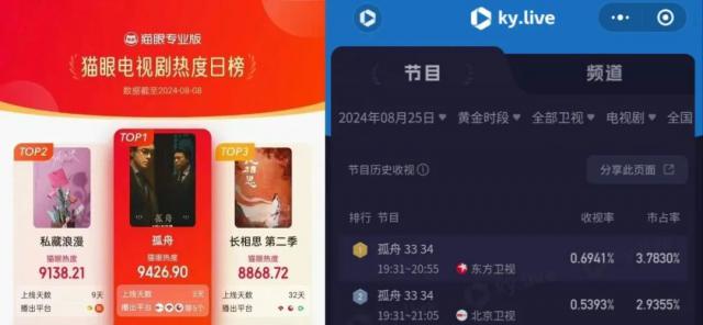 此外 kk 还有一点需要注意的是,除了各个平台独立播出的内容外,爱奇艺制作的《小两口》和《孤舟》都采用了台网同步播出的方式,其中《小两口》在央视八套和爱奇艺播出;《孤舟》在爱奇艺和优酷同时播出,成为“多星联播”的受益者,在东方卫视、北京卫视、江苏卫视播出。从播出数据可以看出,这两部剧充分发挥了家庭和盘战的广泛群众基础,观众对内容的青睐也足够了,在台湾和网络两侧都能取得不错的成绩。