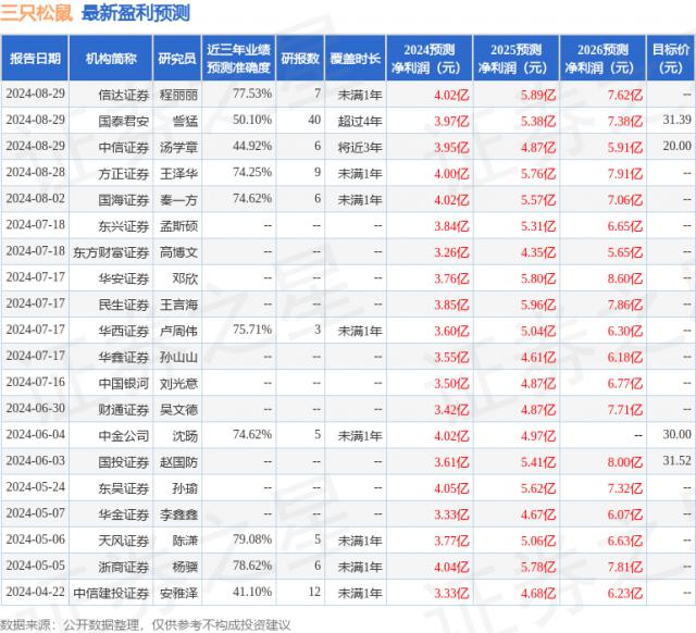 王言海民生证券有限公司 , 近日,张玲玉对三只松鼠进行了研究,并发布了《2024》调查报告 年中报告点评:延续高增长趋势,稳步推进配送业务。本报告对三只松鼠进行了买入评级,目前股价为 16.94 元。