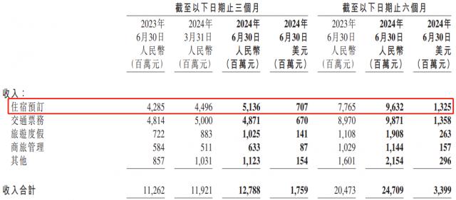 首先要看携程。根据财报,2024 2008年第二季度,携程的住宿预订业务收入为 51 亿元,同比增长 环比增长20% 14%,无论是同比增速还是环比增速,都明显高于总收入。此外,住宿预订业务占总收入的比重达到 40%,对收入变化的影响较为显著。