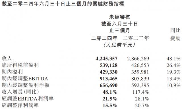 再次看看同程。根据财报,2024 2008年第二季度,同程营业收入为 42.45 亿元,同比增长 环比增长48.1% 9.80%;净利润为 4.29 亿元,同比增长 19.3%;经调节 EBITDA 为 9.13 亿元,同比增长 13.4%;经调节 EBITDA 利润率为 与去年同期相比,21.5%下降 6.6 %。