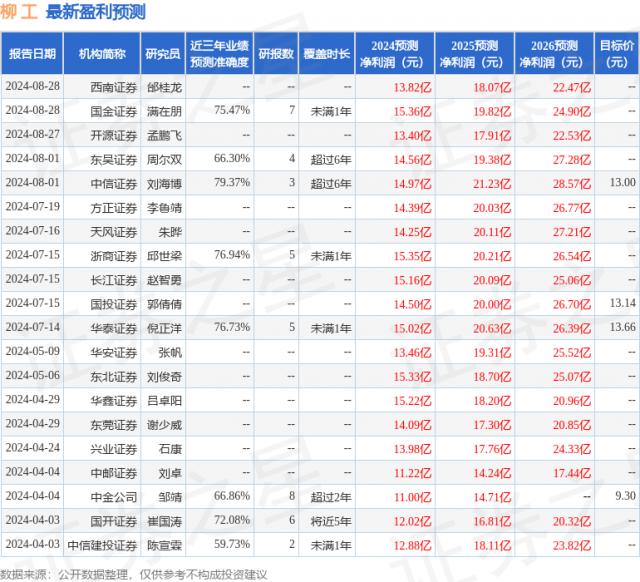 根据证券之星数据中心近三年发布的研究报告数据,中信证券刘海博的研究人员团队对该股进行了深入的研究,近三年的预测准确度均为 预测79.37% 2024 年度归属净利润为利润 14.97 十亿,根据现价转换预测。 PE 为 11.99。