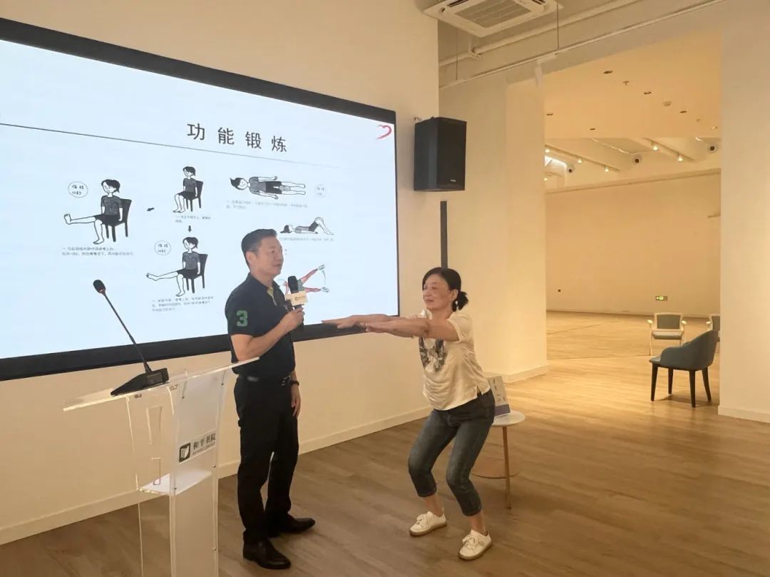 在健康生活工作坊阶段,龚利博士通过亲自示范直观地展示了膝盖疼痛的自我按摩位置和按摩技术,纠正了参与者错误的锻炼方法。理论与实践的结合,使参与者正确理解了膝盖疼痛的科学辅助治疗方法,为推广健康生活方式奠定了坚实的基础。