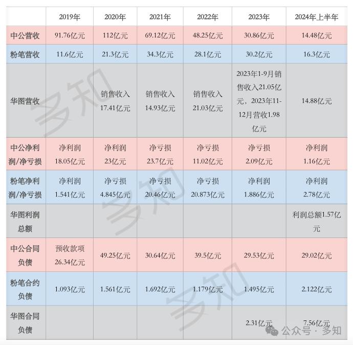 (2019-2024年上半年,中公、铅笔、华图主要业绩指标,多知根据公告、询问函等公开信息整理)