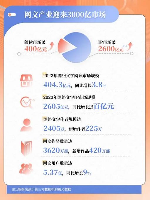 在某种程度上,小红书涉足网络文学和发力视频完全一样。根据《2023中国网络文学发展调查报告》,2023年网络文学总体规模不断扩大。读书市场规模达到404.3亿元,同比增长3.8%,网络文学IP市场规模大幅跃升至2605亿元,同比增长近100亿元;作家、作品、读者数量呈稳步增长趋势,作者数量达到2405万,新作者数量达到225万,作品数量达到3620万,新作品数量达到420万,用户数量达到5.37亿,同比增长9%。