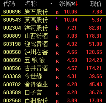 下午零售、白酒、免税、旅游等消费股上涨,大连友谊、中央商场涨停,洋河股权、友阿股份、中百集团、茂业商业、祥源文化旅游等多芯股涨幅超过5%。