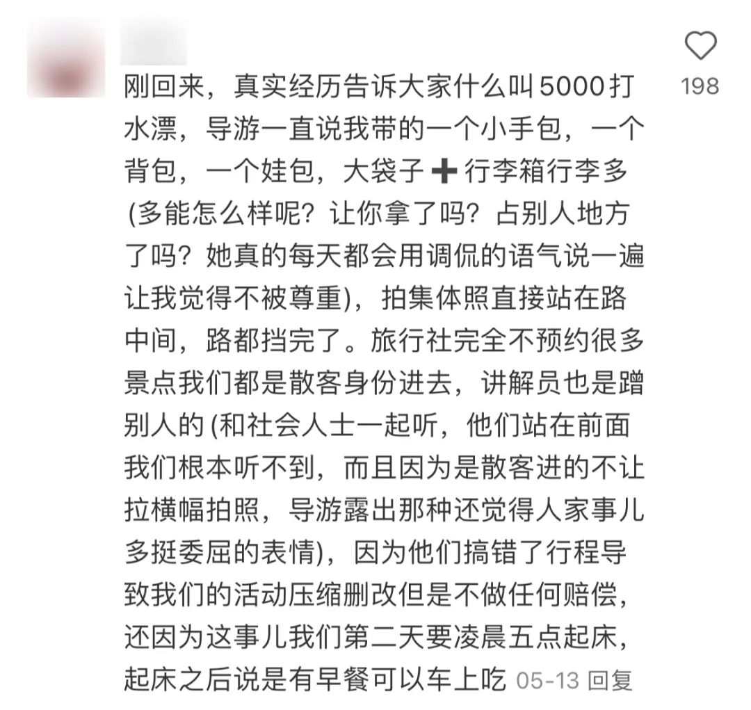 相比之下,一般旅游团或私人团体全程入住五星级酒店,售价仅为4800元至5100元。