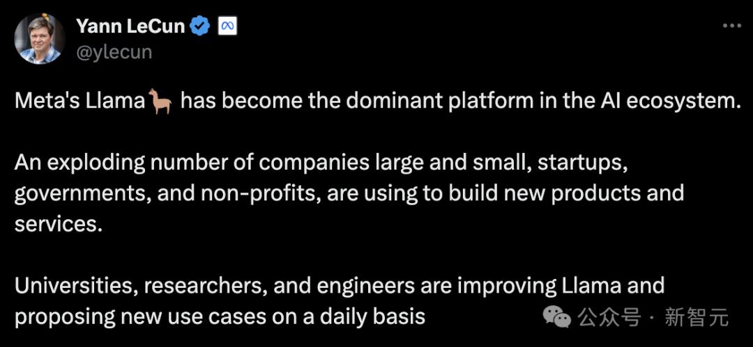 LeCun还没有忘记宣传自己的模型。越来越多的大企业、小企业、创业公司、政府和非营利组织正在基于此开发新的产品和服务。