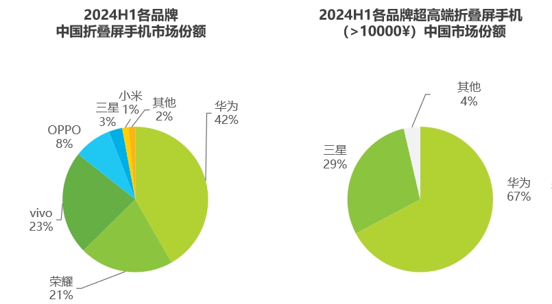 据艾瑞报道,2024年上半年,折叠式手机市场呈现出“一极多强”的竞争格局。而且这个“一极”就是以42%的市场份额领先的华为。在超高端市场中,华为占据了半壁江山的领先地位,特别是在超过10,000元的超高端市场中。或许全面领先的华为,才能有足够的行业积累来完成三折叠屏这一行业创新范式的转变。