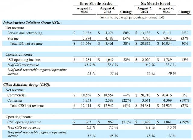 第二季度基础设施解决方案集团营收 116.5 亿美元,同比增长 分析师预期的38% 105.8 亿美金;