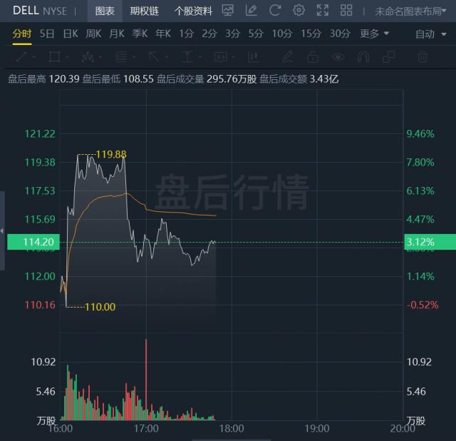 财务报告发布后,戴尔美股市一度上涨。 现在涨幅收窄到8% 3%。